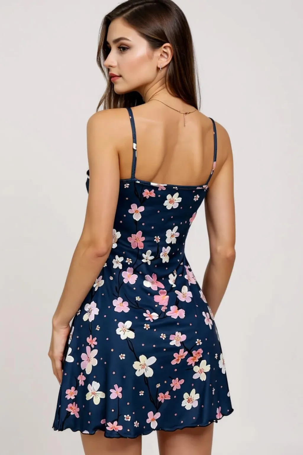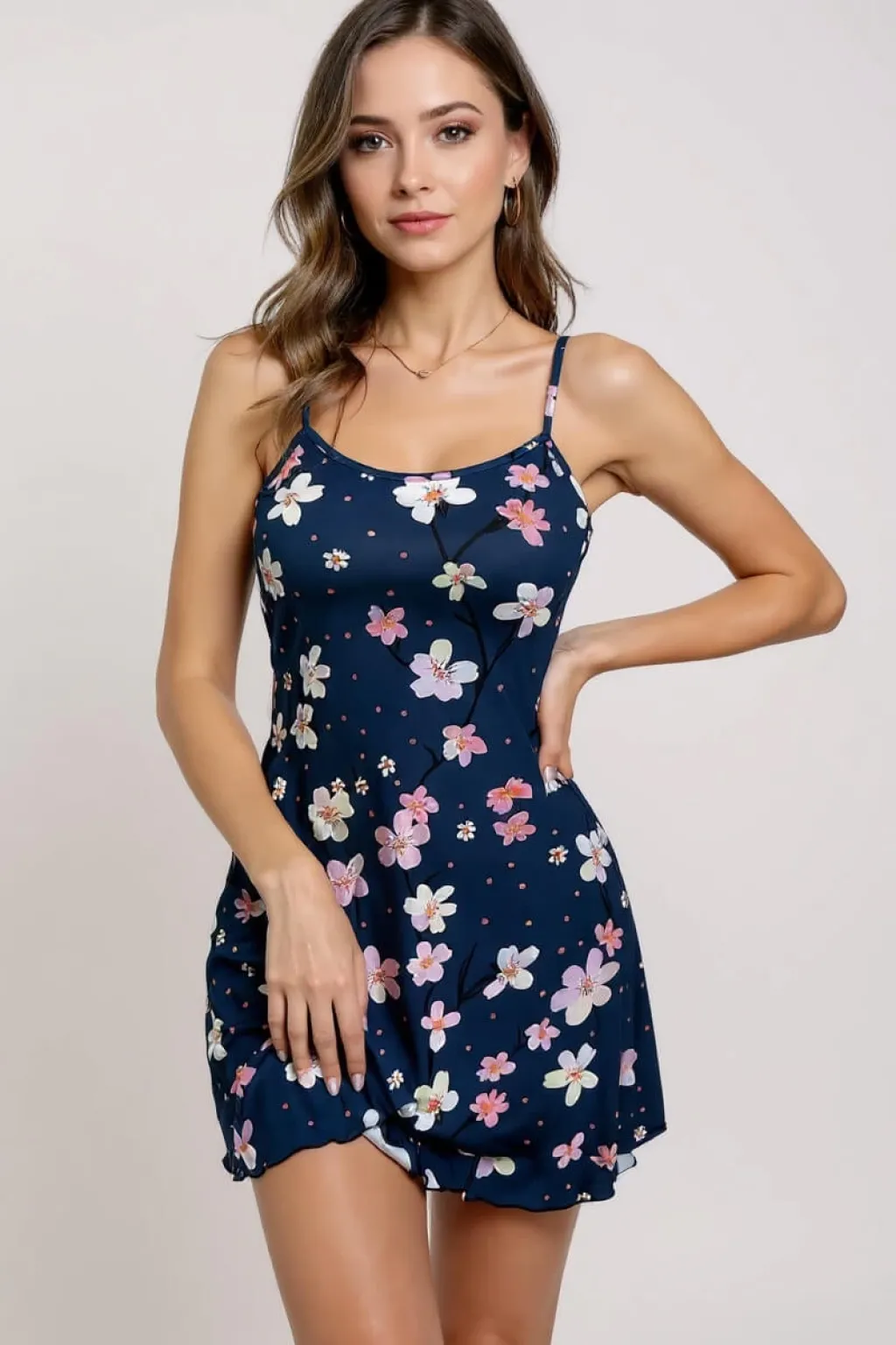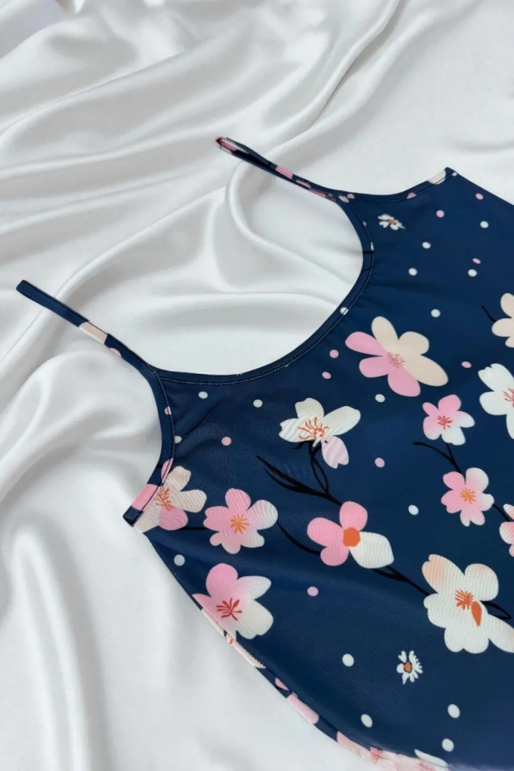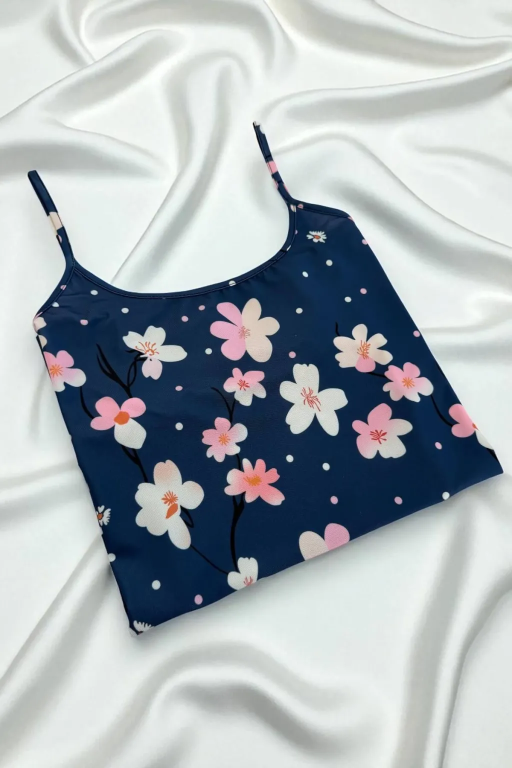 Renkli Kelebek Desenli Askılı Kadın Gecelik