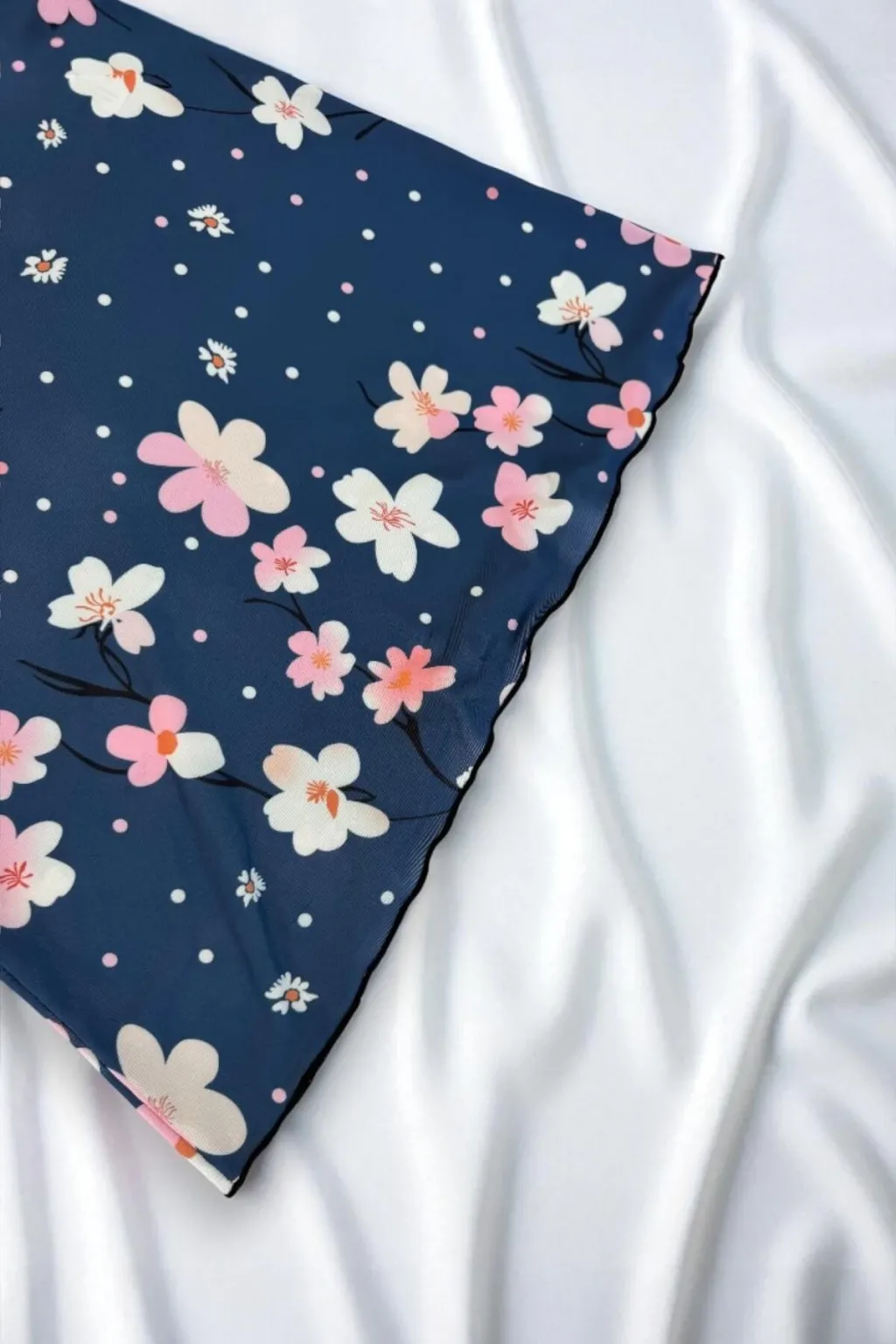 Sırt Dekolteli Gökyüzü Desenli Siyah Saten Gecelik