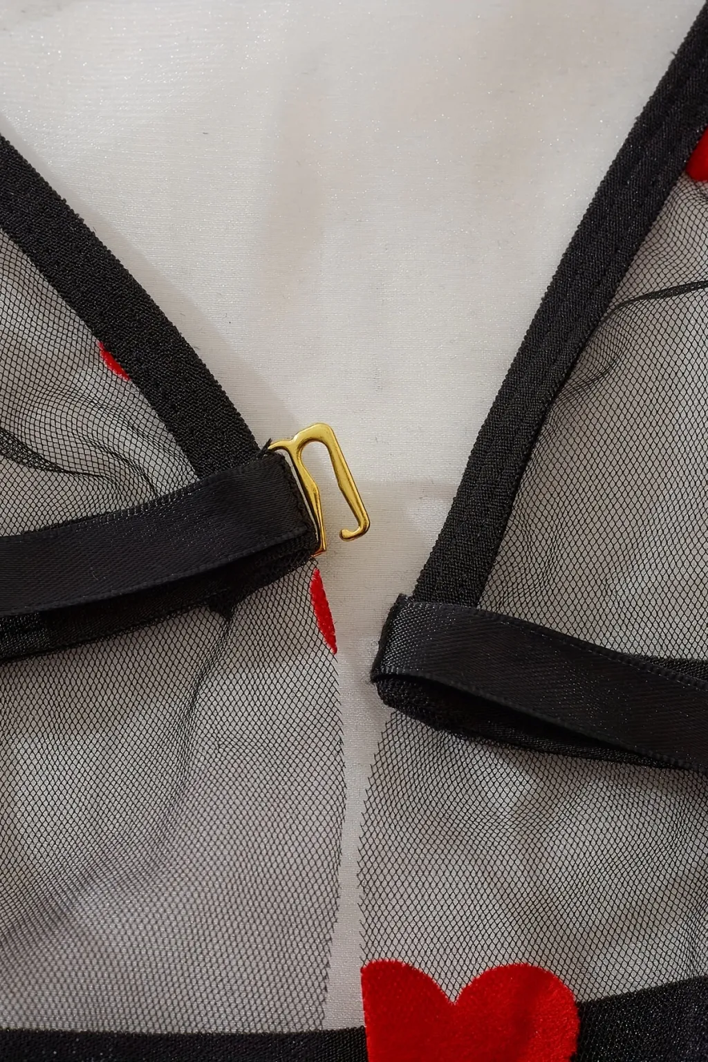 Kalp Desenli Siyah Transparan Gecelik TM1378