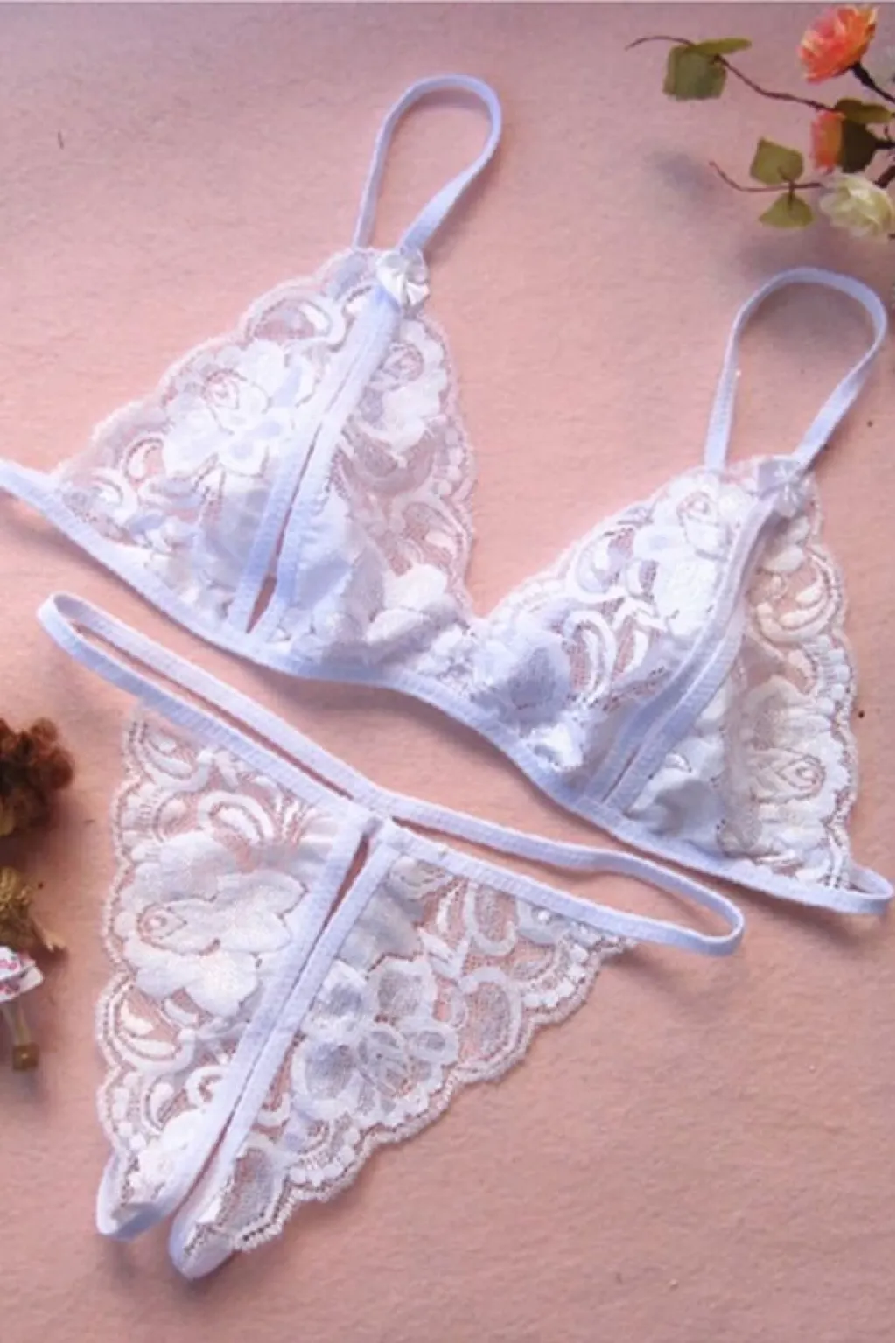 Beyaz Dantelli Fantazi Sütyen ve G-String Takımı
